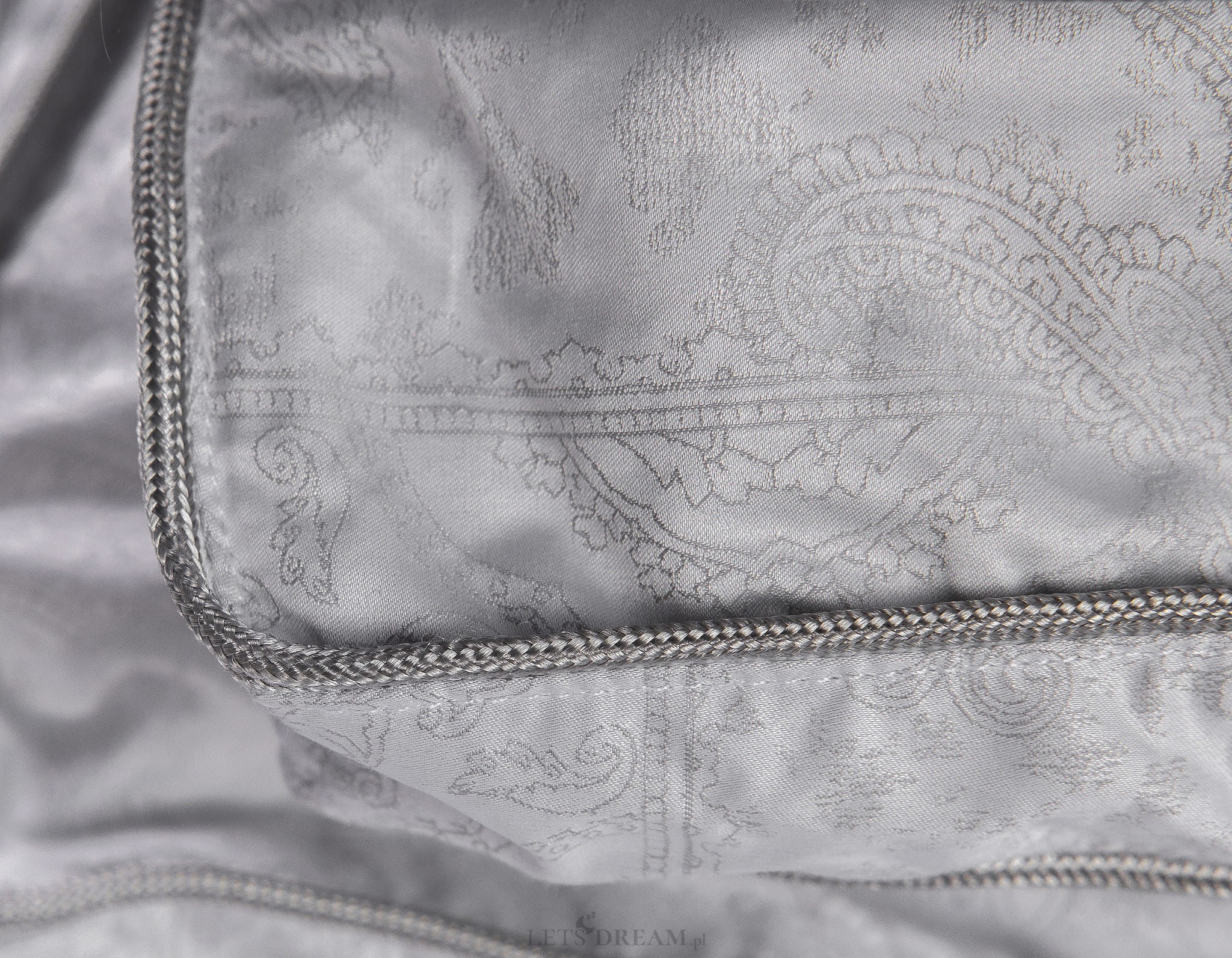 Poszycie najnowszej kolekcji stanowi luksusowy, elegancki, puchoszczelny jedwab z delikatnym wzorem, wykonany z najwyższą precyzją i dbałością o każdy detal. Jedwabne poszycie jest bardzo delikatne, gładkie, miłe w dotyku i doskonale reguluje temperaturę ciała.