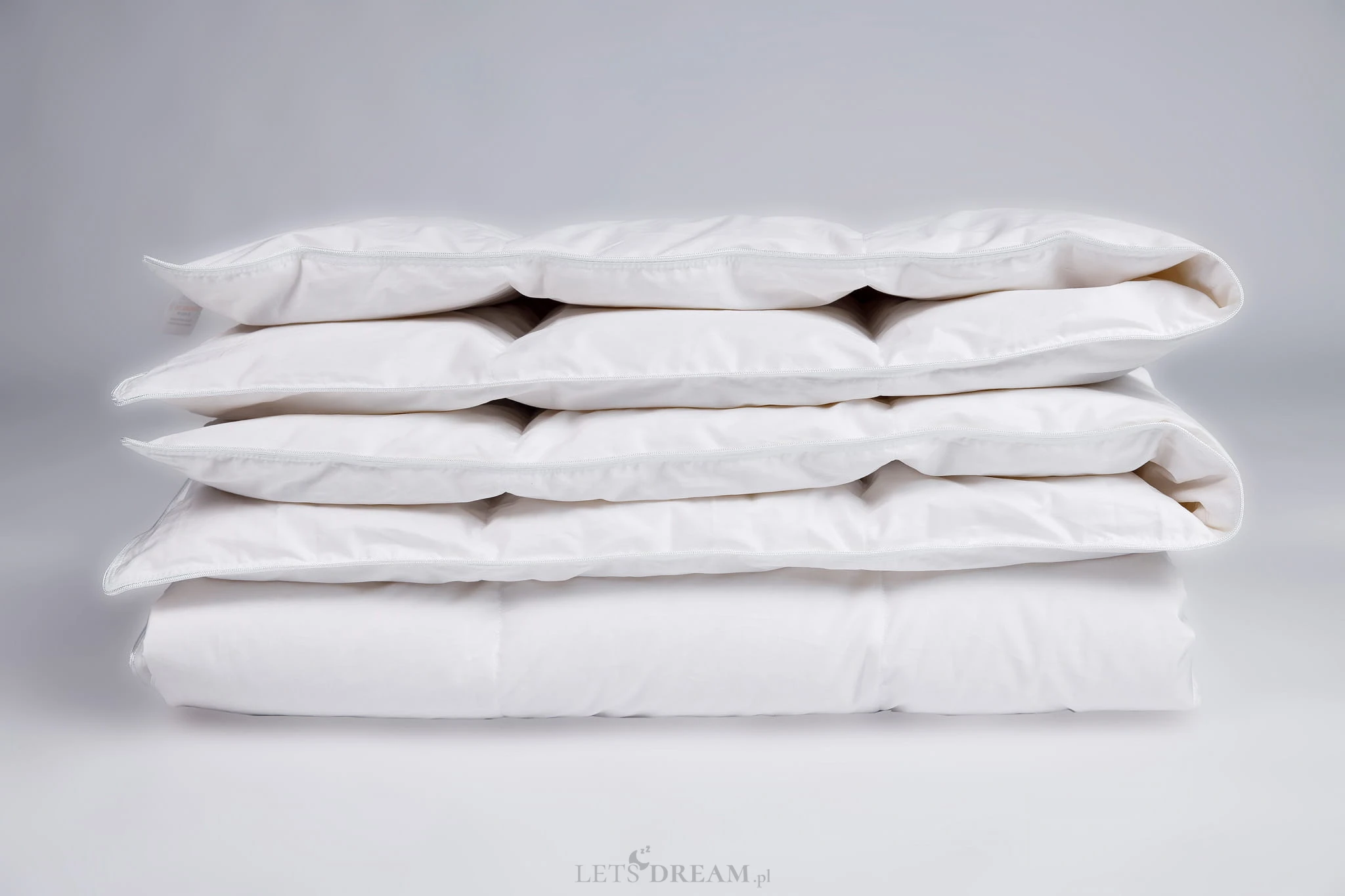 Wypełnienie – Biały Puch Gęsi, odpowiednio przygotowany zgodnie z Normami Europejskimi. Dzięki zastosowaniu tak wysokiej jakości puchu, kołdry są wyjątkowo ciepłe nawet przy niskiej wadze wypełnienia. Puch gęsi charakteryzuje się wyjątkowymi właściwościami termicznymi, higroskopijnymi (absorbuje wilgoć), zapewnia przyjemną dla organizmu naturalność i delikatność. Puch Gęsi wypełniający kołdry i poduszki pobiera z otoczenia powietrze, a następnie utrzymuje je w pustych obszarach swoich promieni – zapewnia 100% odpowiedniej cyrkulacji powietrza dla organizmu ludzkiego, jakże istotnego podczas snu. Kołdra okrywająca ciało ludzkie gwarantuje ponadprzeciętną ochronę cieplną, nie powodując przy tym przegrzania organizmu. Kasetonowa konstrukcja kołder zapobiega powstawaniu zimnych stref ponieważ wypełnienie pozostaje równomiernie rozłożone na całej powierzchni. Natomiast poduszki umożliwiają odpowiedni opływ powietrza wokół głowy, dzięki czemu budzimy się wypoczęci i odprężeni. Na szczególną uwagę zasługuje również najwyższej jakości poszycie użyte w tej kolekcji – wykonane z Lyocellu. Jest to nowoczesna tkanina wykonana z naturalnych włókien celulozy drzewnej, wytwarzana w procesie zrównoważonej produkcji. Materiał ten jest niezwykle miły i delikatny w dotyku, niczym jedwab. Ultra lekkie, gładkie i delikatne poszycie jest przyjazne dla skóry, także tej wrażliwej, wymagającej wyjątkowego podejścia. Lyocell mimo swojej delikatności jest bardzo wytrzymały, nie rozciąga się, nie kurczy . Znany jest także ze znakomitych właściwości oddychających. Włókna w optymalnym stopniu pochłaniają wilgoć oraz regulują temperaturę – dzięki czemu nasza najnowsza kolekcja w kolorze optycznej bieli z wypełnieniem z puchu gęsiego oraz poszycia z Lyocellu, sprawdzi się o każdej porze roku.