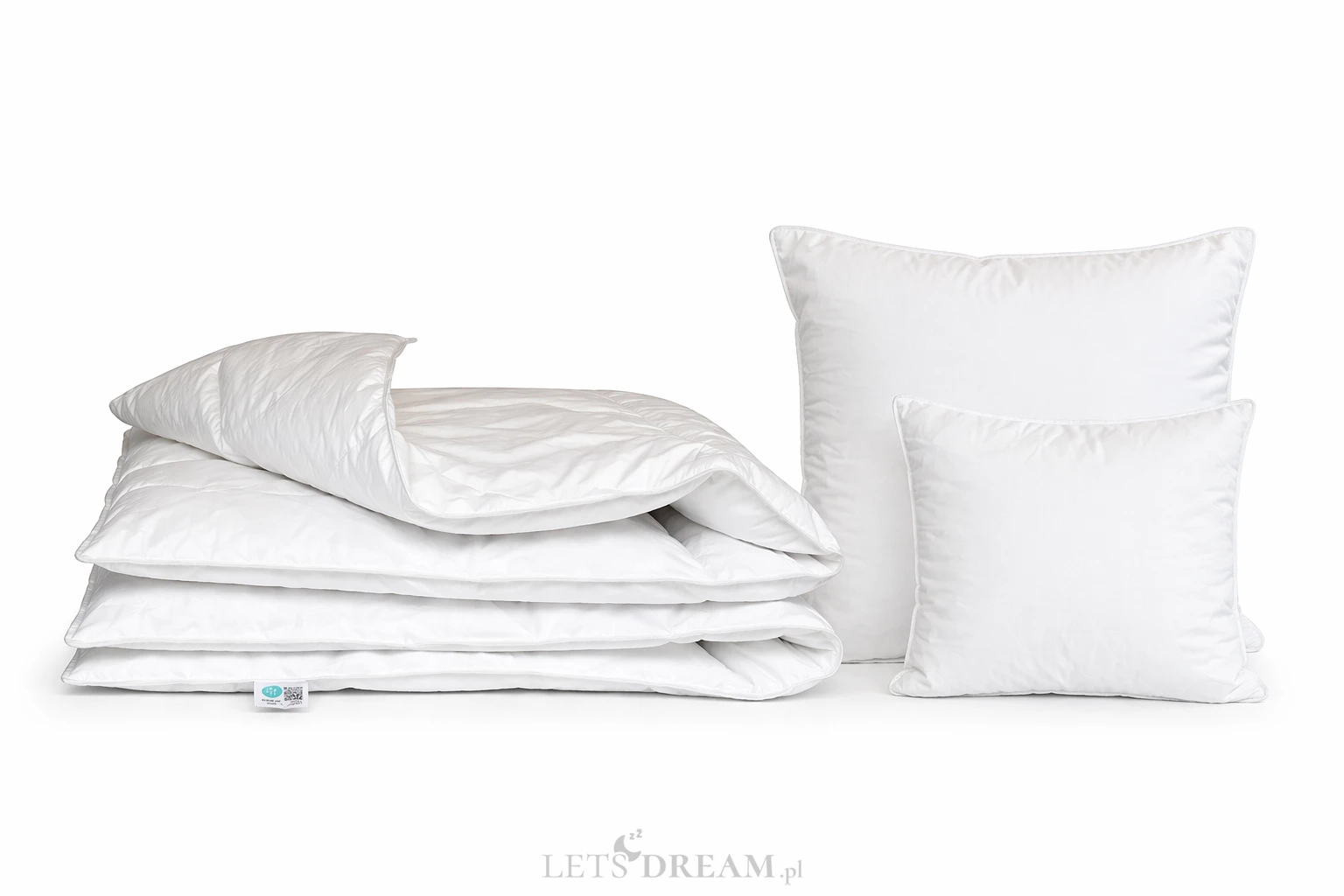 Wypełnienie – Biały Puch Gęsi, odpowiednio przygotowany zgodnie z Normami Europejskimi, Certyfikowany wg Oeko-Tex Standard 100. Dzięki zastosowaniu tak wysokiej jakości puchu, kołdry są wyjątkowo ciepłe nawet przy niskiej wadze wypełnienia. Puch gęsi charakteryzuje się wyjątkowymi właściwościami termicznymi, higroskopijnymi (absorbuje wilgoć), zapewnia przyjemną dla organizmu naturalność i delikatność. Puch Gęsi wypełniający kołdry i poduszki pobiera z otoczenia powietrze, a następnie utrzymuje je w pustych obszarach swoich promieni – zapewnia 100% odpowiedniej cyrkulacji powietrza dla organizmu ludzkiego, jakże istotnego podczas snu. Kołdra okrywająca ciało ludzkie gwarantuje ponadprzeciętną ochronę cieplną, nie powodując przy tym przegrzania organizmu. Kasetonowa konstrukcja kołder zapobiega powstawaniu zimnych stref ponieważ wypełnienie pozostaje równomiernie rozłożone na całej powierzchni. Natomiast poduszki umożliwiają odpowiedni opływ powietrza wokół głowy, dzięki czemu budzimy się wypoczęci i odprężeni. Na uwagę zasługuje również najwyższej jakości poszycie użyte w najnowszej kolekcji, które stanowi jedwabiście gładka, higieniczna i delikatna w dotyku bawełna w kolorze optycznej bieli o najwyższej możliwej gramaturze 400 (TC400FH). Zastosowany materiał poszycia – 100% bawełna wygładzana olejkiem aloesowym – zapewnia doskonały termoobieg powietrza, dzięki czemu użyte wypełnienie zachowuje wszystkie swoje właściwości przez bardzo długi czas.
