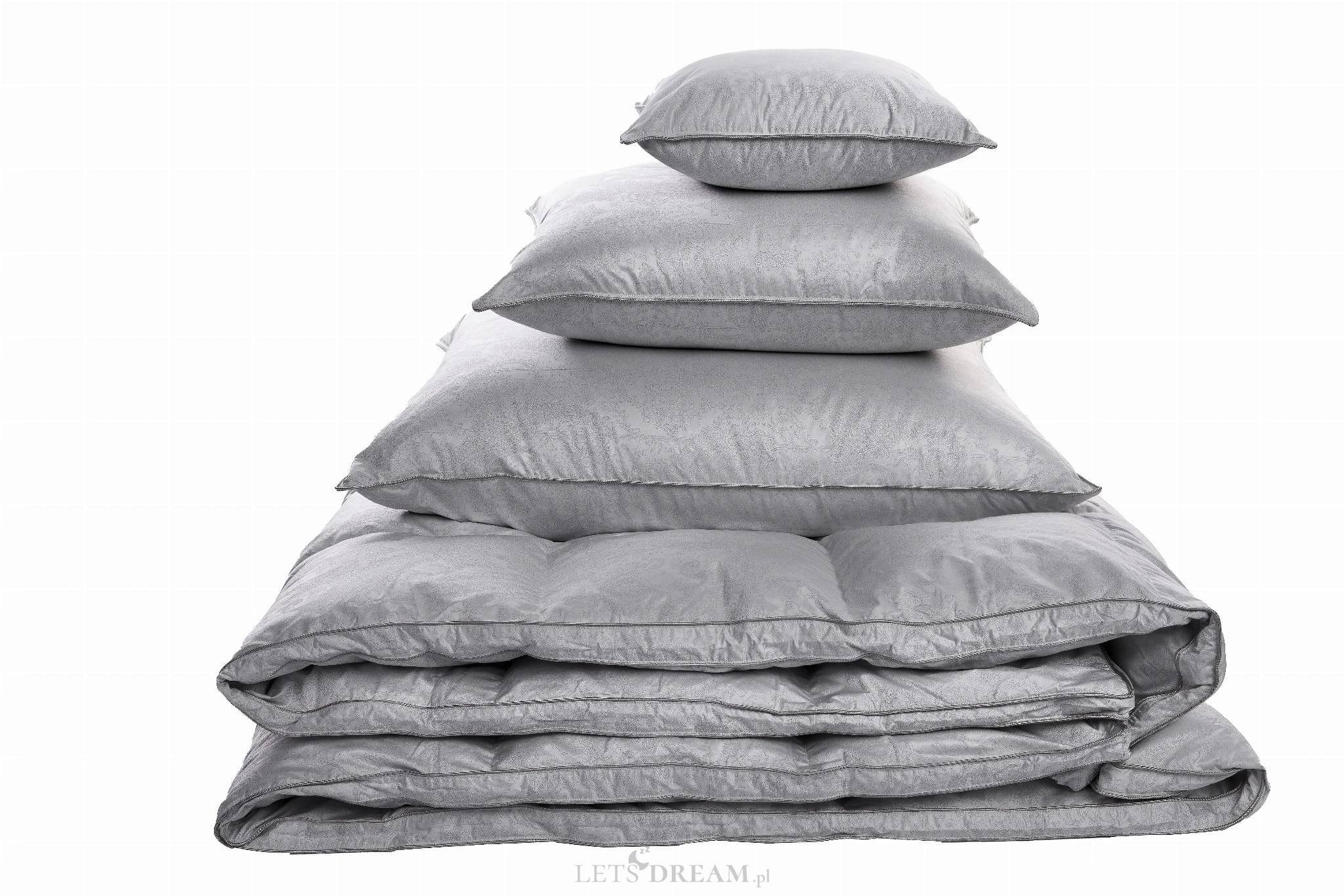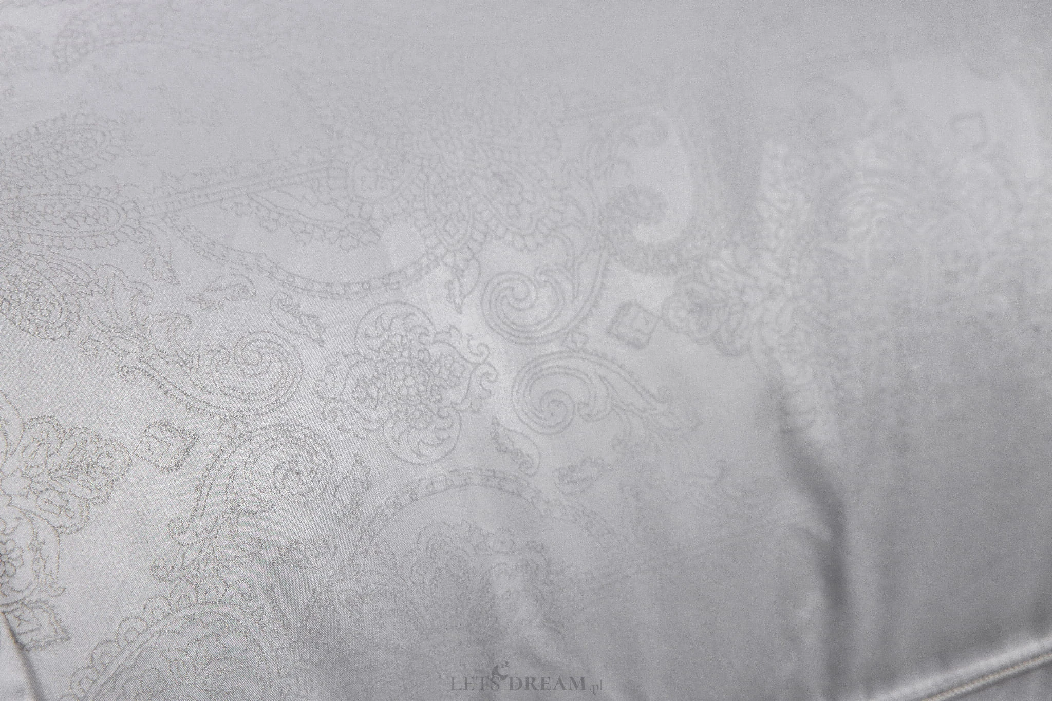 Poszycie najnowszej kolekcji stanowi luksusowy, elegancki, puchoszczelny jedwab z delikatnym wzorem, wykonany z najwyższą precyzją i dbałością o każdy detal. Jedwabne poszycie jest bardzo delikatne, gładkie, miłe w dotyku i doskonale reguluje temperaturę ciała.